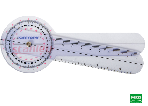 Przezroczysty plastik pozwala widzieć oś obrotu stawu i zakres ruchu zginanego palca.360-stopniowa głowica ma trzy skale skalibrowane zgodnie z międzynarodowymi normami pomiarowymi (ISOM).